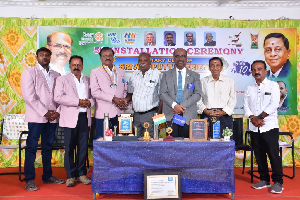 ஸ்ரீவில்லிபுத்தூர் பிரண்ட்ஸ் ரோட்டரி சங்கத்தின் 5ம் ஆண்டு பதவியேற்பு விழா ஸ்ரீவில்லிபுத்தூரில் ராமராஜ் திருமண மண்டபத்தில் மாவட்ட ஆளுநர் Rtn. Major Donor. Er. J. தினேஷ் பாபு தலைமையில் உதவி ஆளுநர் Rtn.MPHF. G. முருகதாசன் முன்னிலையில் நடைபெற்றது. இதில் கலசலிங்க பல்கலைக்கழக வேந்தர் திரு Dr. K. ஸ்ரீதரன் அவர்கள் சிறப்பு விருந்தினராக கலந்து கொண்டார். முன்னாள் தலைவர் திரு Rtn. PHF. K.பால்சாமி அவர்கள் 25-26 ஆண்டின் தலைவர் திரு Rtn. PHF. Er. T. கந்தசாமி அவர்களுக்கு பதவிப்பிரமாணம் செய்து வைத்தார். 2025-26 ஆம் ஆண்டறிக்கையை நிர்வாக செயலாளர் திரு Rtn. PHF. S. ஜாகிர் உசேன் சமர்ப்பித்தார். இந்நிகழ்வில் மாவட்ட நீதிமன்றத்திற்கு மாற்றுத்திறனாளிகள் மற்றும் முதியோர்கள் பயன்படும் வகையில் வீல் சேர் ஒன்று ஸ்ரீவில்லிபுத்தூர் பிரண்ட்ஸ் ரோட்டரி சங்கத்தின் சார்பில் கொடுக்கப்பட்டது மற்றும் ஸ்ரீவில்லிபுத்தூர் நகர் 10ம் மேற்பட்ட பள்ளியைச் சார்ந்த 24-25ம் கல்வி ஆண்டில் 10 & 12 பயின்று பள்ளியில் முதல் 2 இடம் பிடித்த மாணவ மாணவிகள் சுமார் 45 பேருக்கு அவர்களை கௌரவப் படுத்தும் விதமாக பரிசு மற்றும் கேடயங்கள் வழங்கப்பட்டது. மற்றும் யோகா போட்டியில் மாவட்ட மற்றும் மாநில அளவில் வென்ற மாணவ மாணவிகளுக்கு கேடயம் மற்றும் நினைவு பரிசு வழங்கப்பட்து. ஸ்ரீவில்லிபுத்தூர் பிரண்ட்ஸ் ரோட்டரி சங்கம் ஸ்ரீவில்லிபுத்தூர் நகராட்சியுடன் இணைந்து நடத்தும் ஆத்ம வனம் (எரிவாயு தகனமேடை) பணிபுரியும் தொழிலாளர்களின் சேவையை பாராட்டி கௌரவப்படுத்தப்பட்டது.மாற்றுத்திறனாளிகள் சுமார் 20 நபர்களுக்கு மேல் அரிசி பல சரக்கு மற்றும் நலத்திட்ட உதவிகள் வழங்கப்பட்டது.தானத்தில் சிறந்த தானம் அன்னதானம் அந்த தானத்திலும் முதல் தானம் கண்தானம் ஸ்ரீவில்லிபுத்தூர் ரோட்டரி சங்கத்தின் நிர்வாகிகளான Rtn. Major Donor. PAG. N.S. வேலாயுதம் மற்றும் Rtn.Er. J. பாலசுப்பிரமணியம் அவர்களின் தாயாரின் கண்கள் சுமார் 4 பேருக்கு இலவசமாக வழங்கினார்கள் ஆகையால் அவர்களை கௌரவப்படுத்தும் விதமாக மாவட்ட ஆளுநர் Rtn. Major Donor Er. J. தினேஷ் பாபு நினைவு பரிசு வழங்கி கௌரவித்தார். இந்நிகழ்வில் கண்தானம் மற்றும் உடல் உறுப்பு தானம் செய்வது குறித்து விழிப்புணர்வு செய்யப்பட்டது இந்நிகழ்வை பட்டய தலைவர் Rtn. Major Donor. PAG. N.S. வேலாயுதம், மகாத்மா பள்ளி தாளாளர் திரு Rtn. PHF. G. முருகேசன் திரு Rtn. PHF. G. சந்திரன் திரு Rtn. PHF. PP. K.B. அங்குராஜ் மற்றும் ரோட்டரி உறுப்பினர்கள் ஏற்பாடு செய்தனர். நிகழ்ச்சி நிறைவாக செயலாளர் திரு Rtn. PHF. Er. V. ராஜு நன்றி கூறினார்.